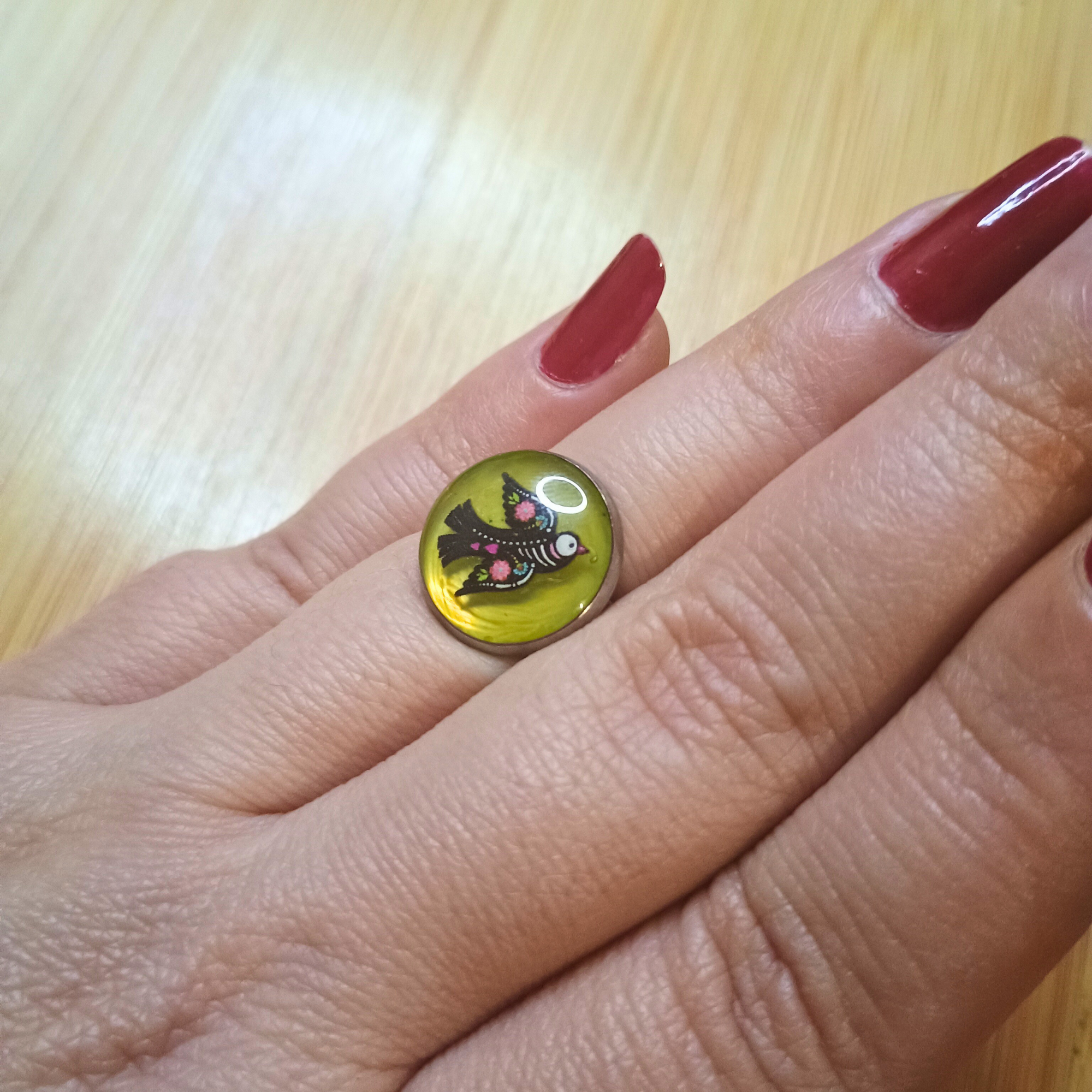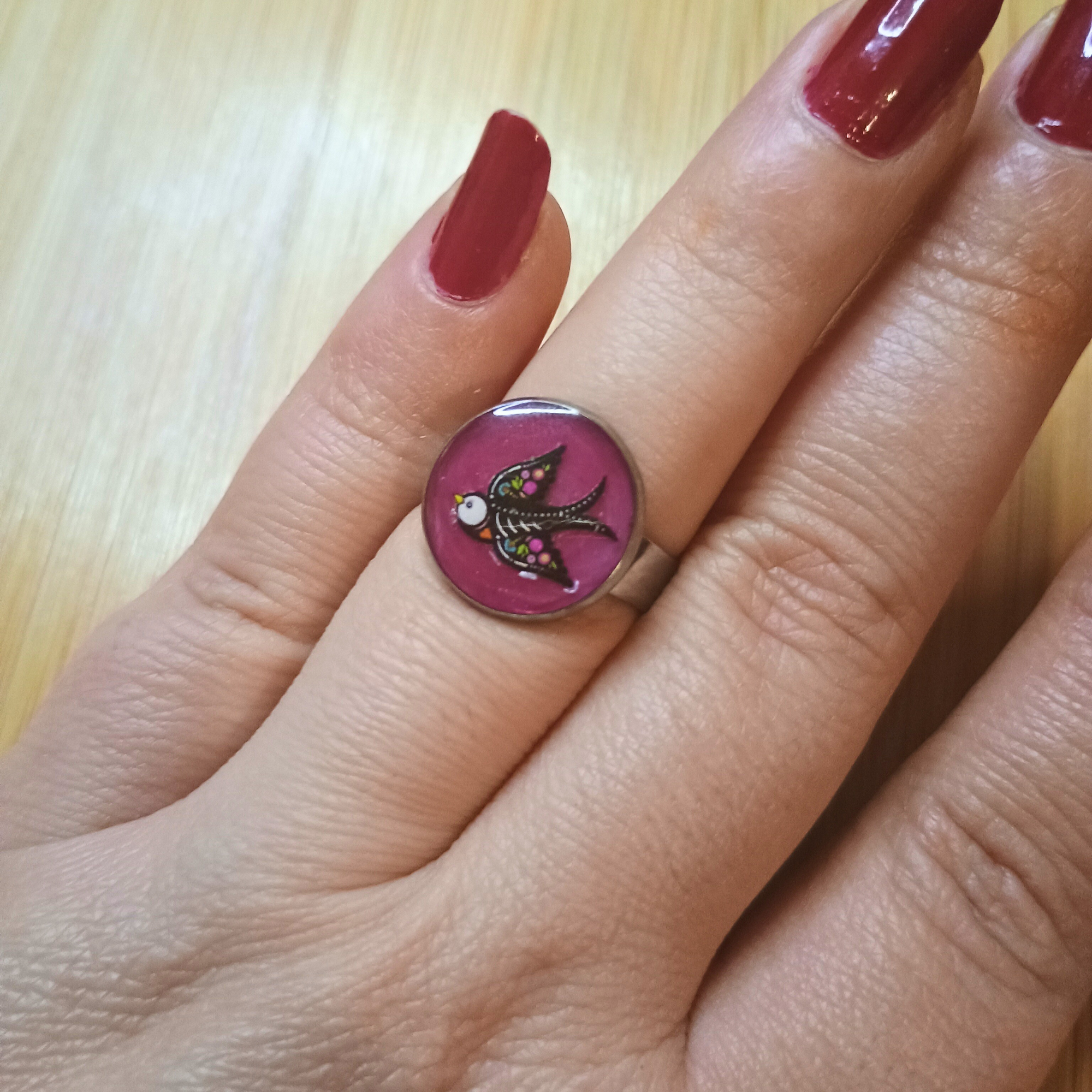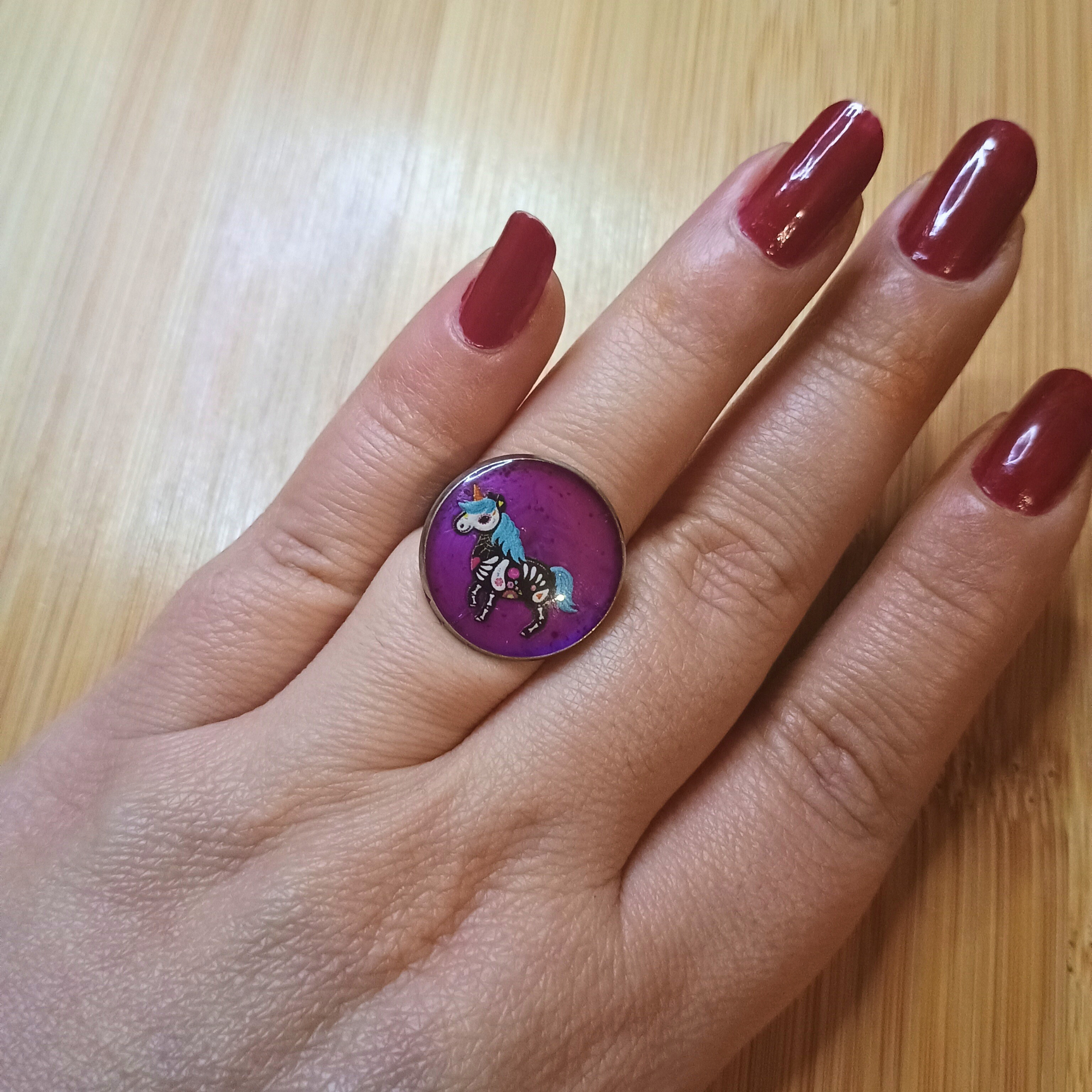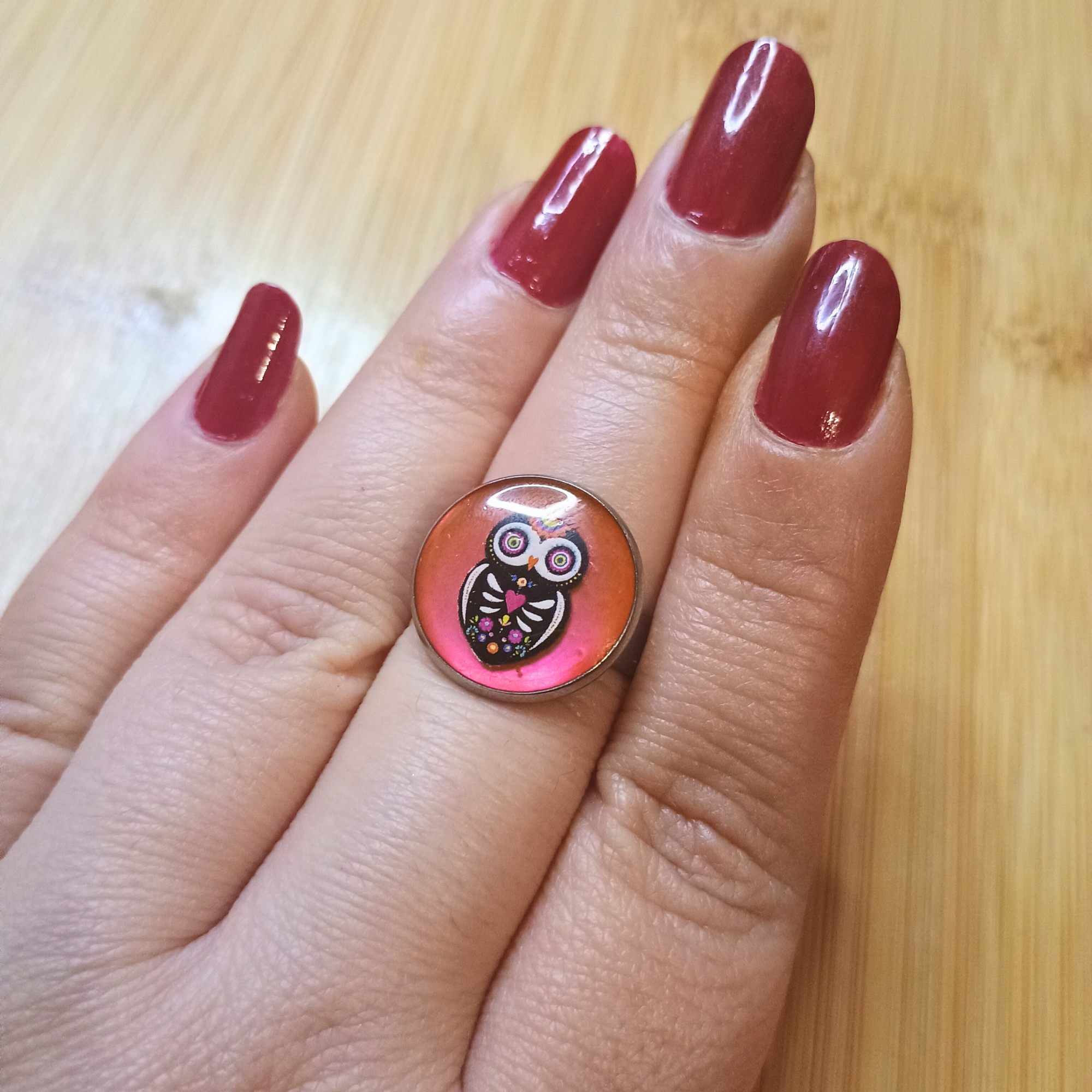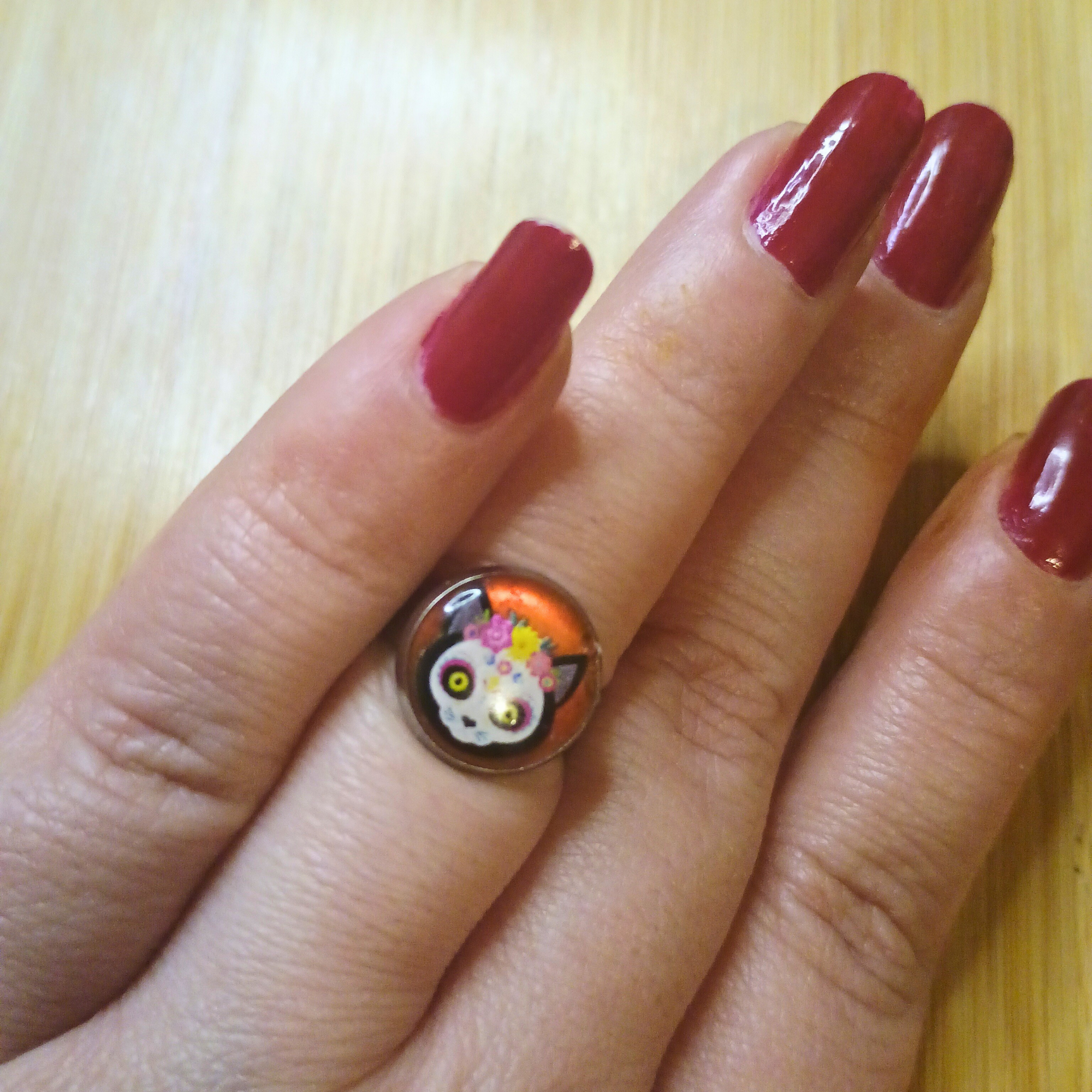 Bagues réglables acier, résine et motif Aninaux Dia de los Muertos