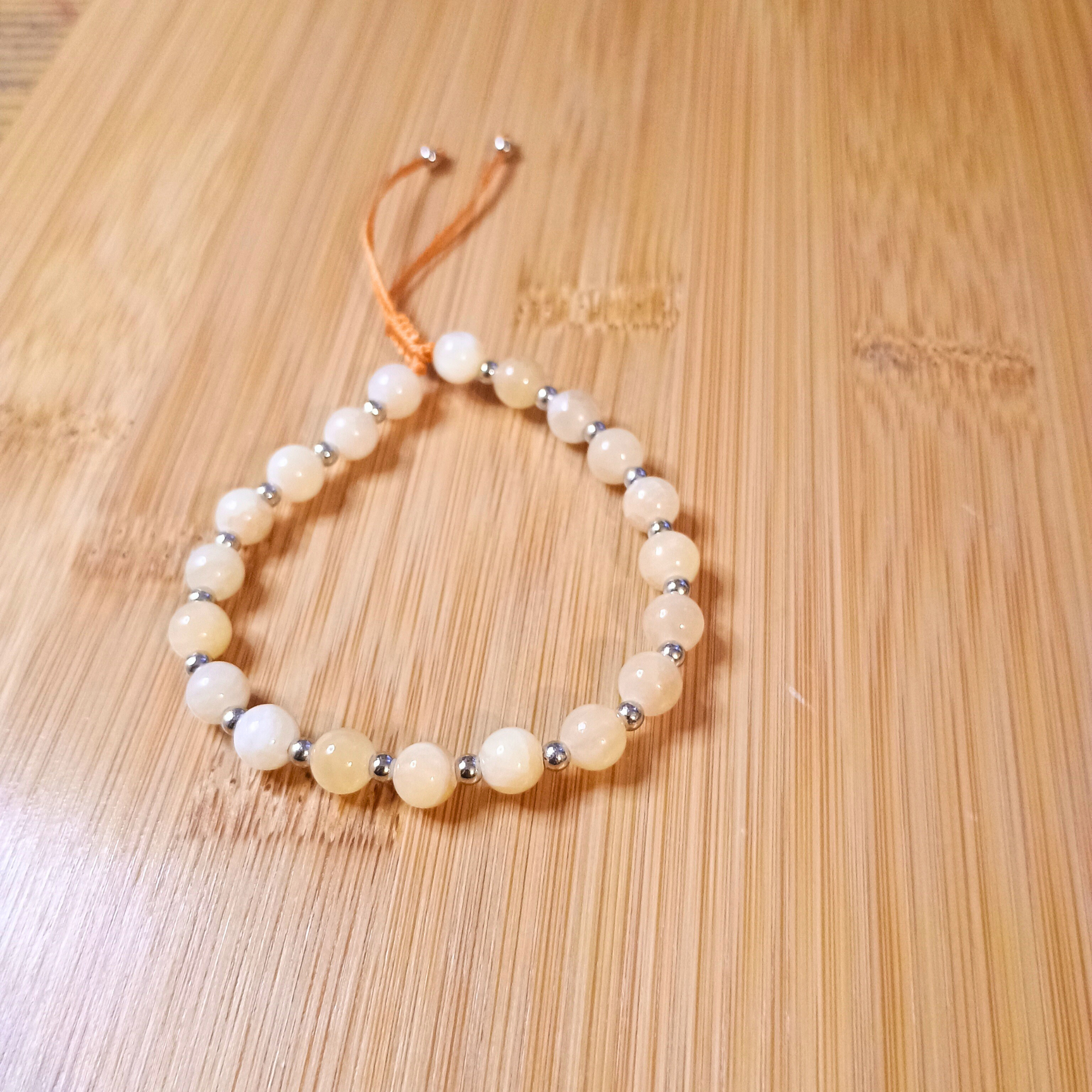 Bracelet Calcite Jaune 6 mm sur cordon réglable