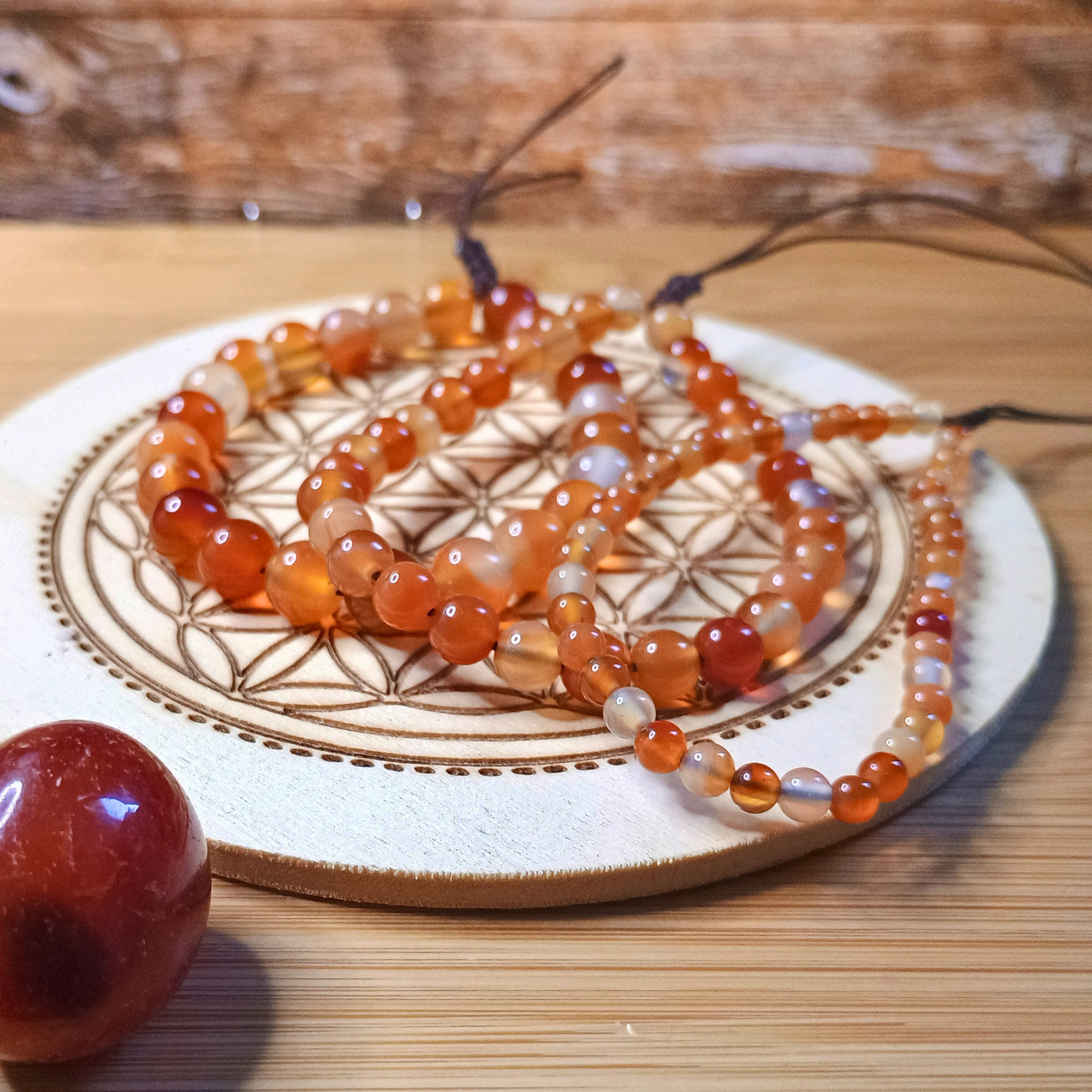 Composition : Fil de jade (nylon tressé), perles cornaline (4,6,8 mm)