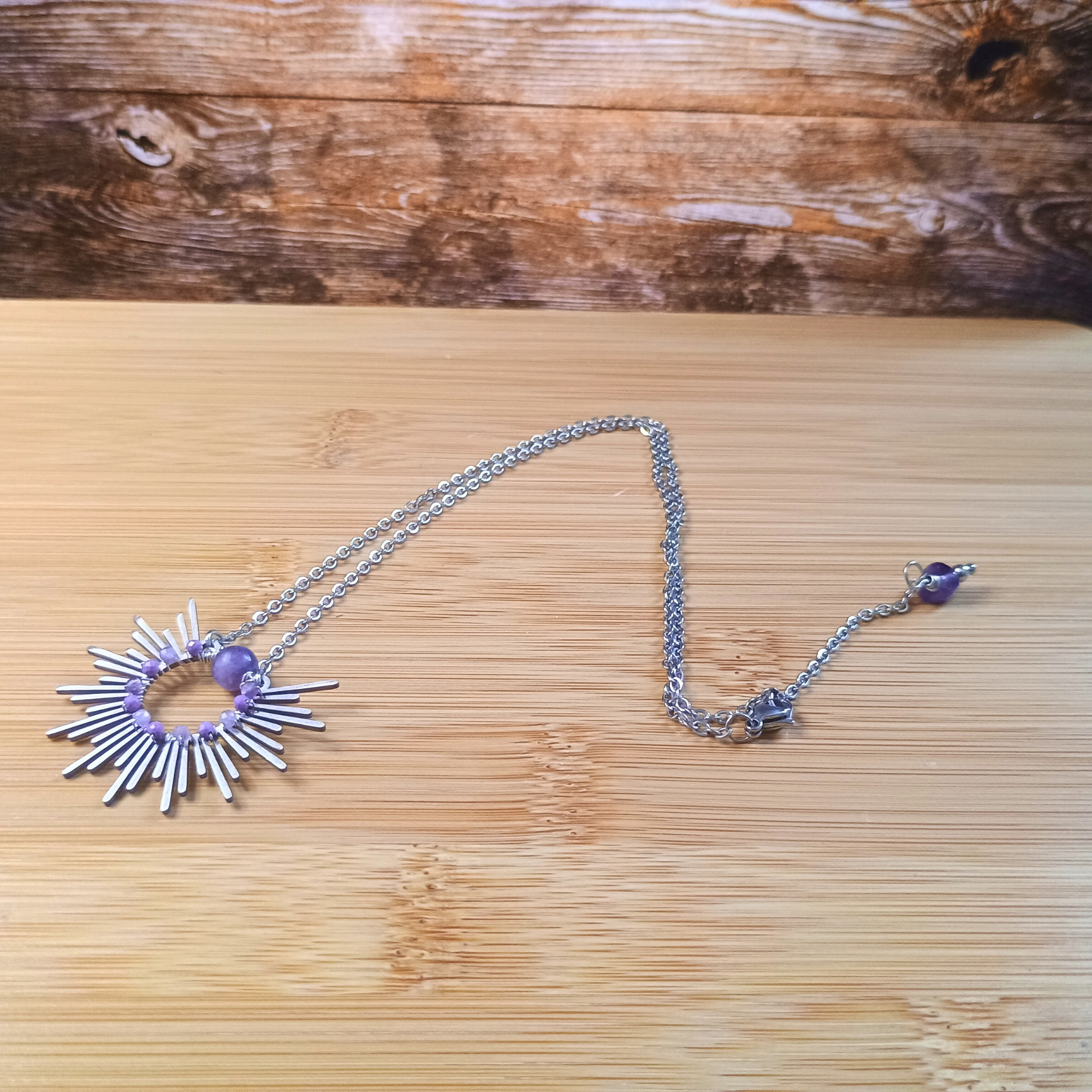 Collier Acier Phœbus Améthyste, Phosphosidérite et Lépidolite.