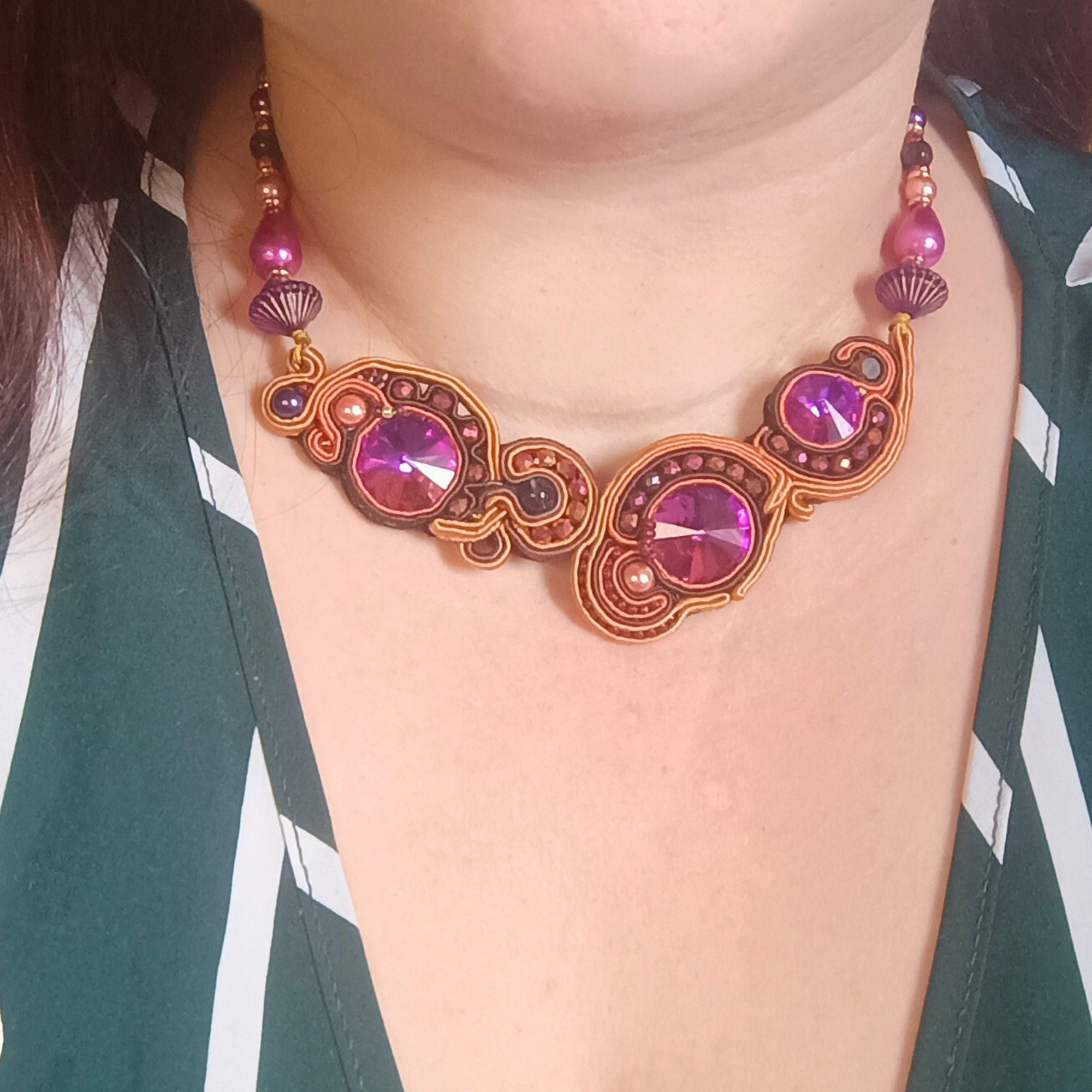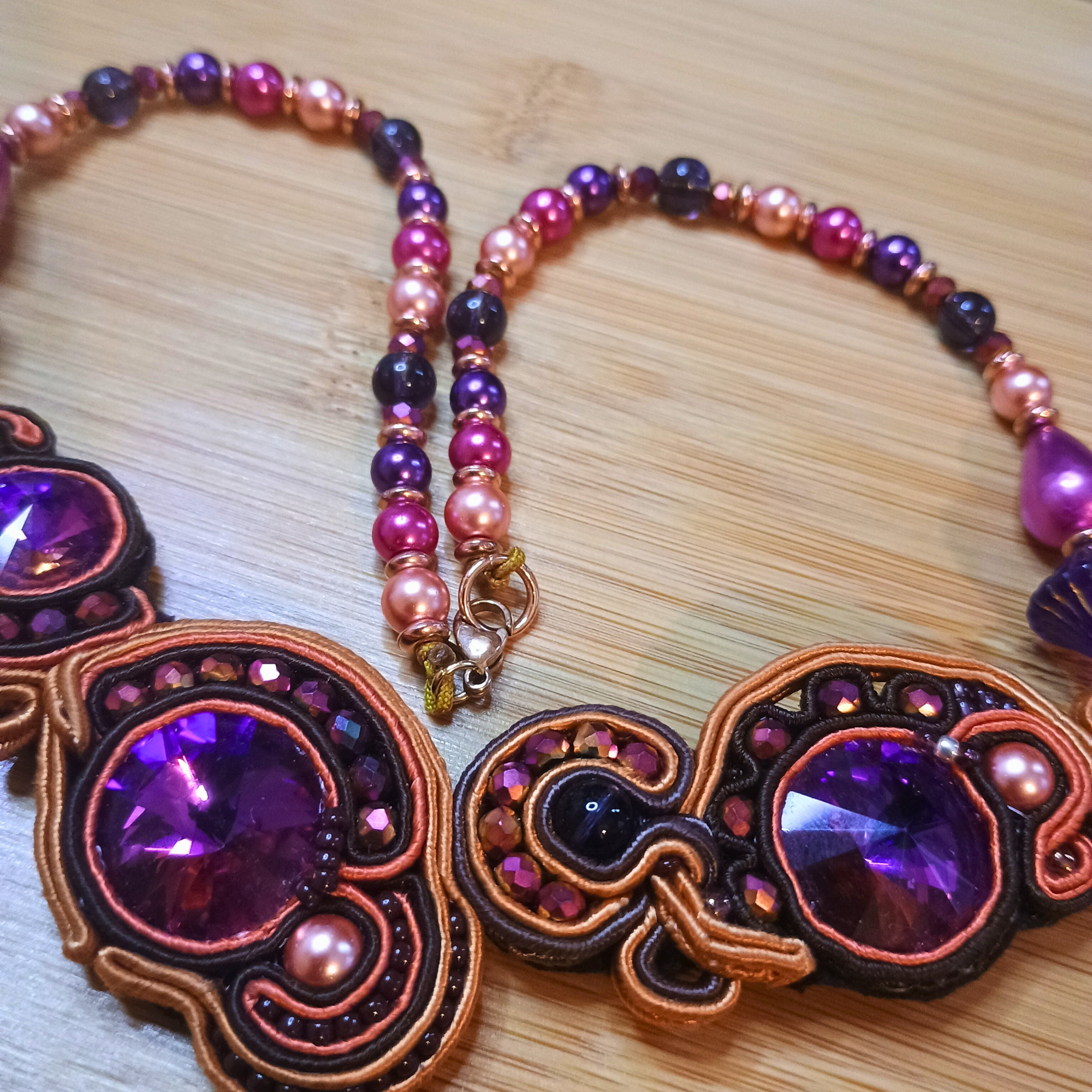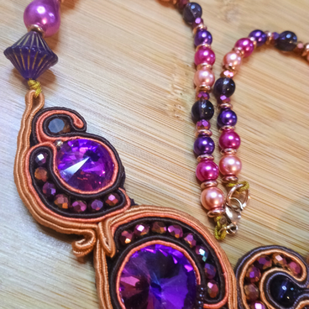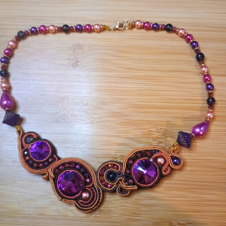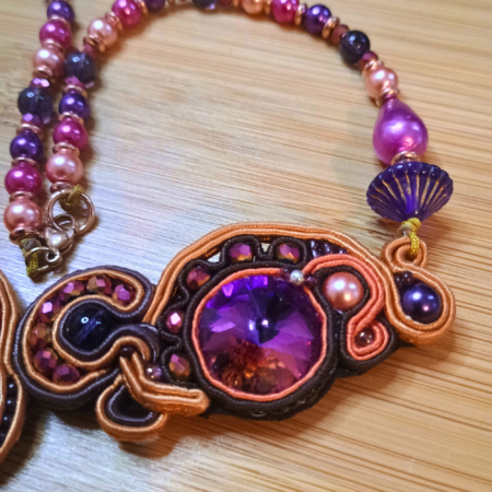 Collier Été Indien en soutache et perles de verre (violet orange marron rose)