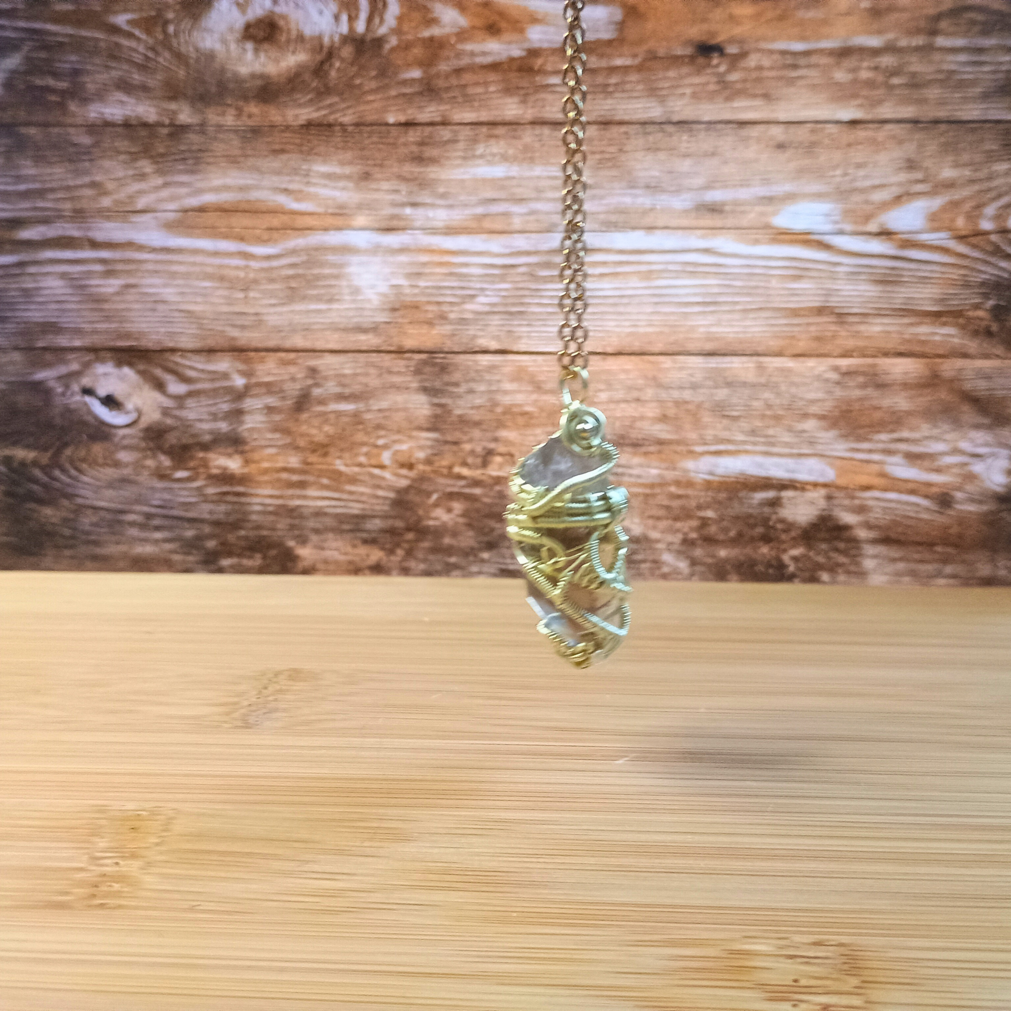 Collier Pendule pointe quartz fumé et cuivre doré