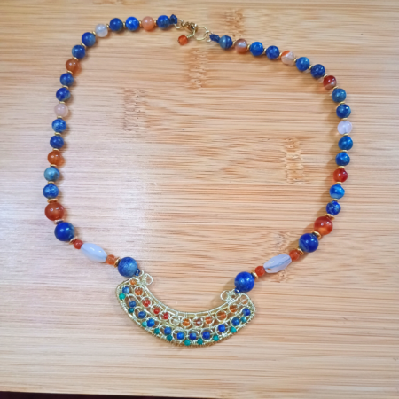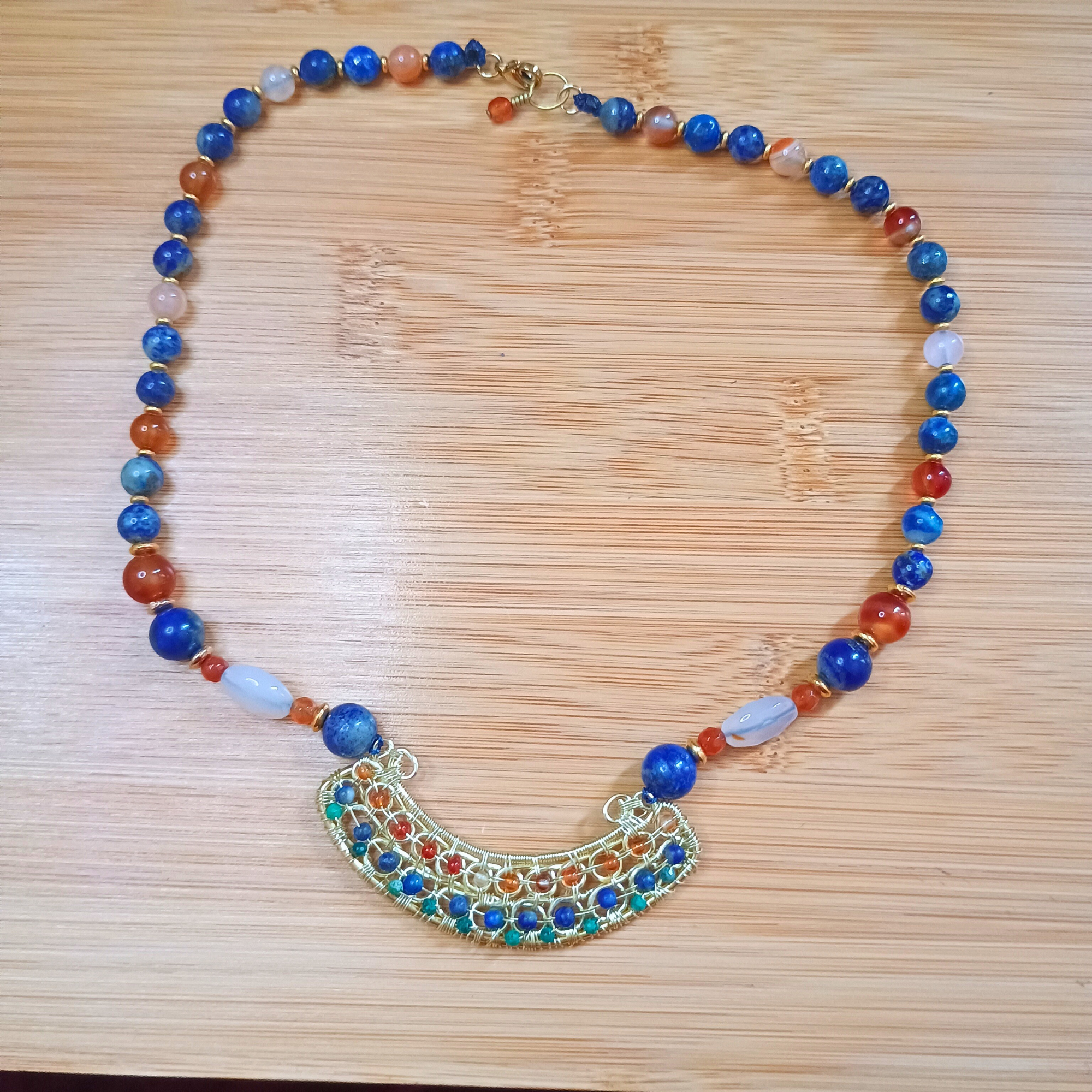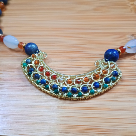 Collier perles lapis lazuli, Chrysocolle et Cornaline, Plastron wire wrapping inspiration Égypte