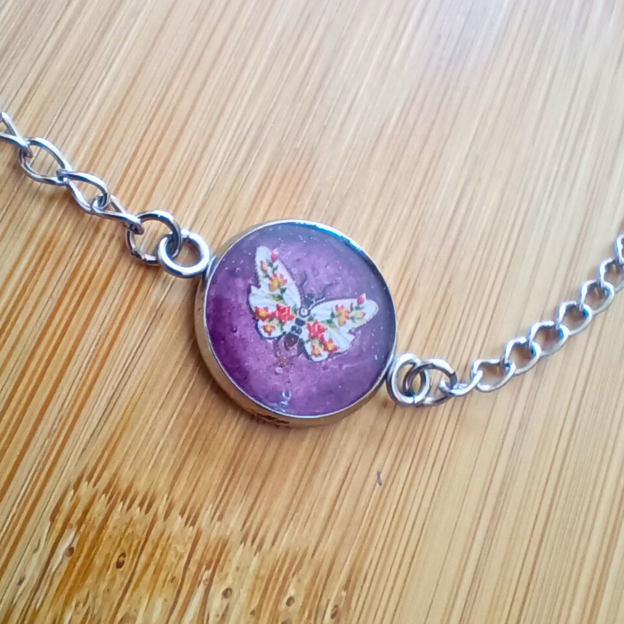 Composition . médaille et chaîne acier, résine uv, incrustation