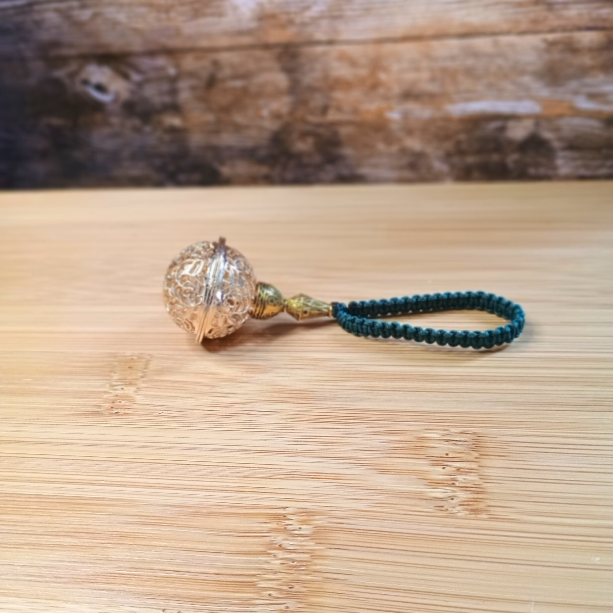 Composition : grelot, perles laiton, cordon jade (nylon)
