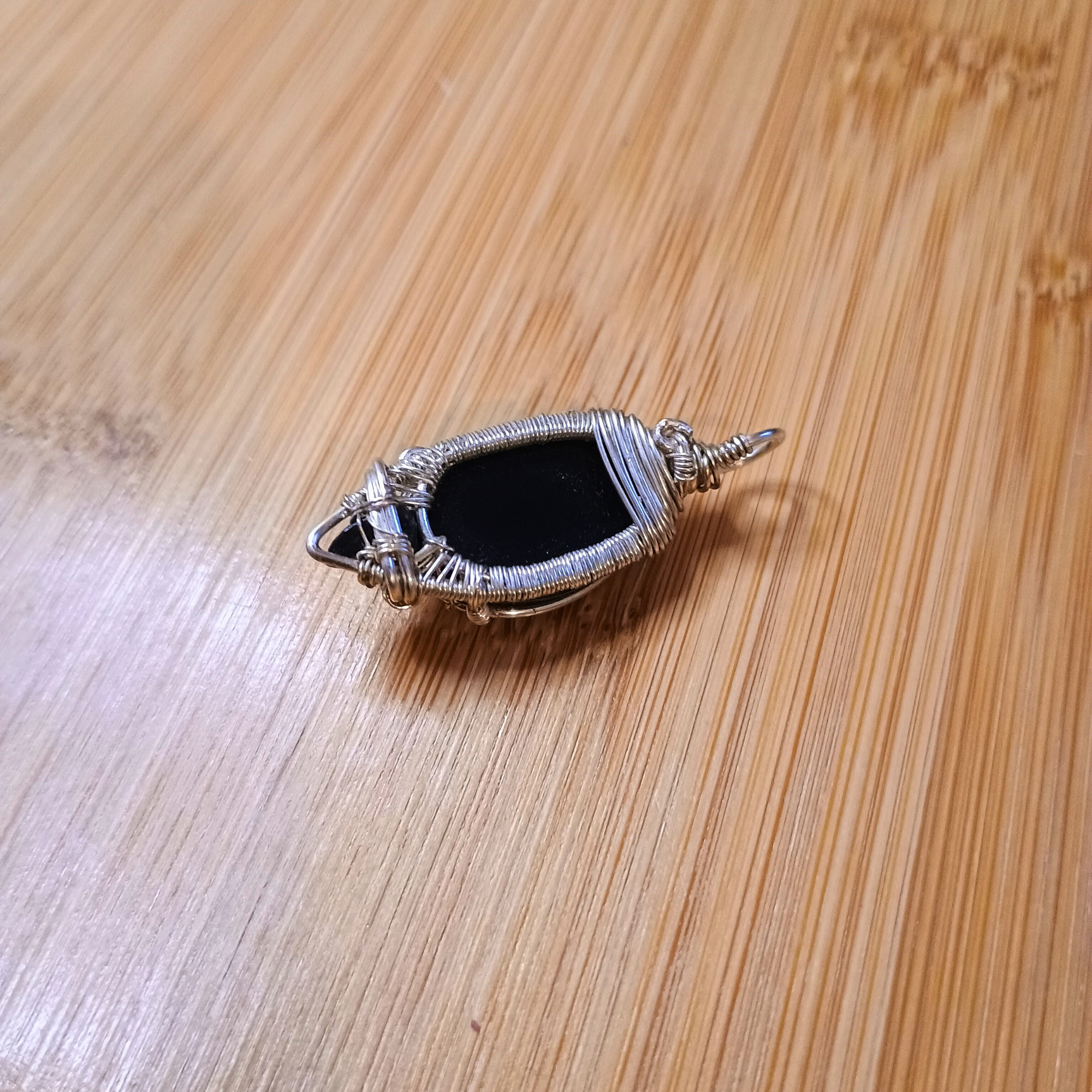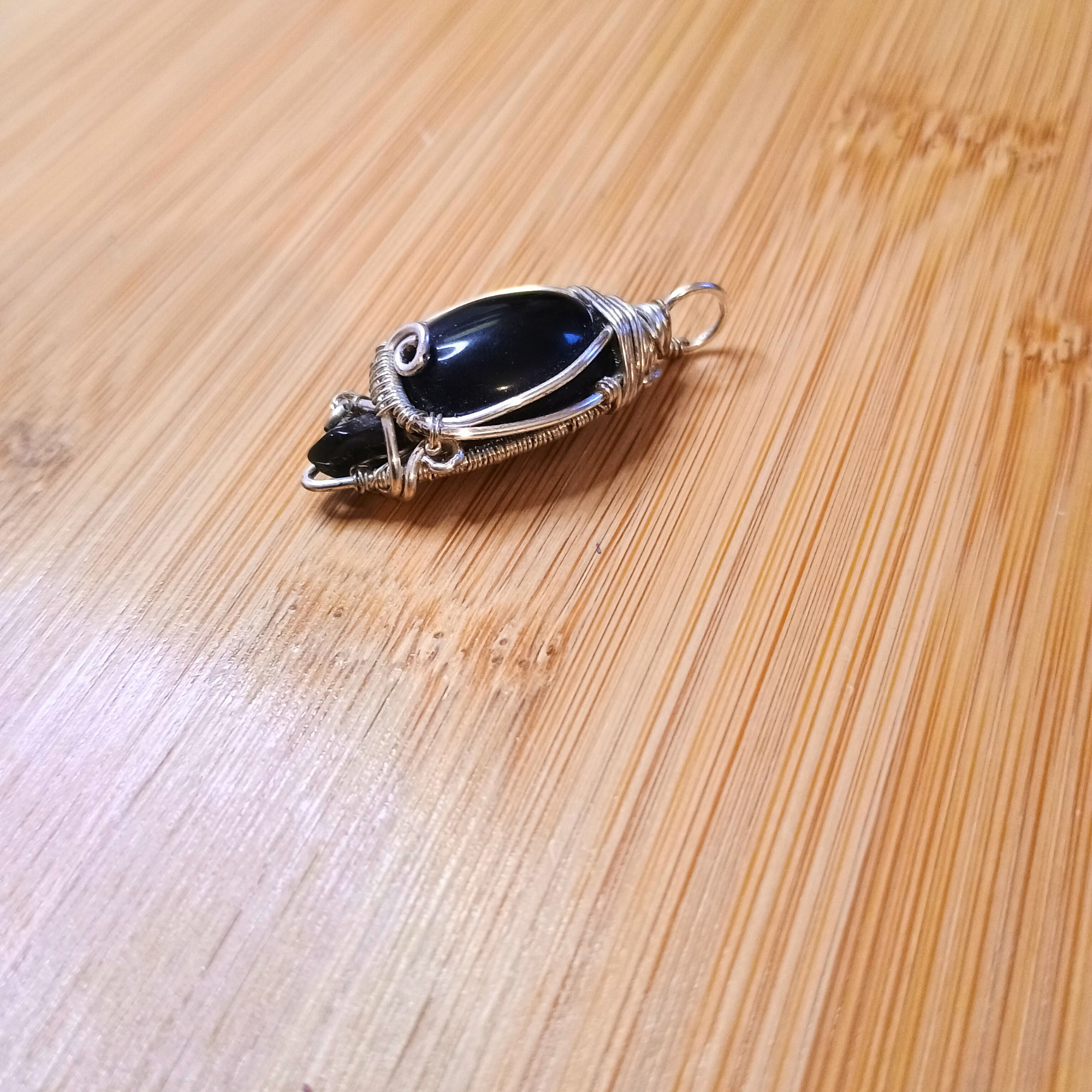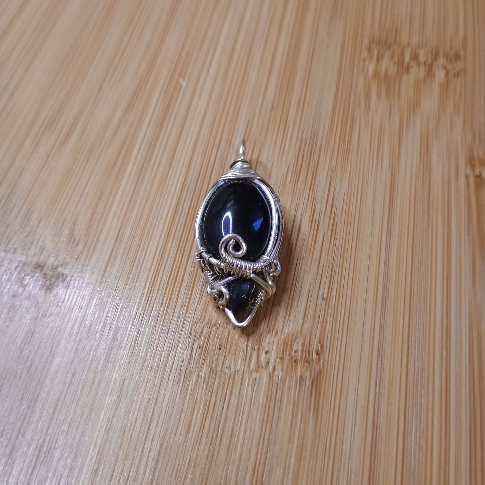Pendentif Cuivre argenté pointe Cabochon obsidienne