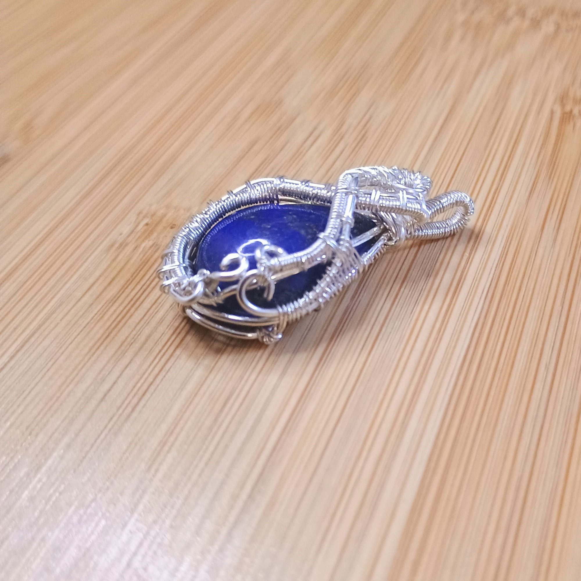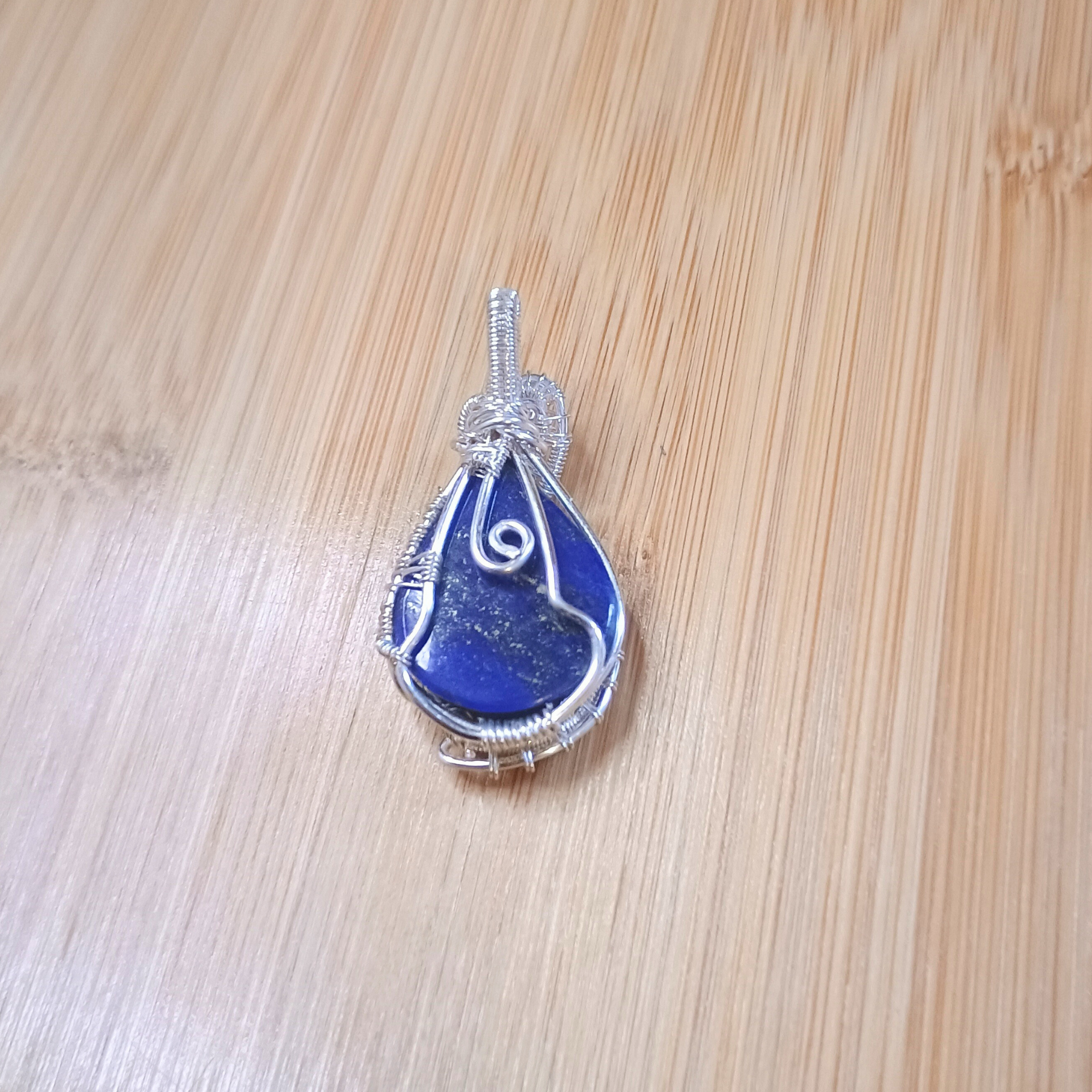 Talisman pendentif Lapis-Lazuli , cuivre argenté et wire wrapping enrubané