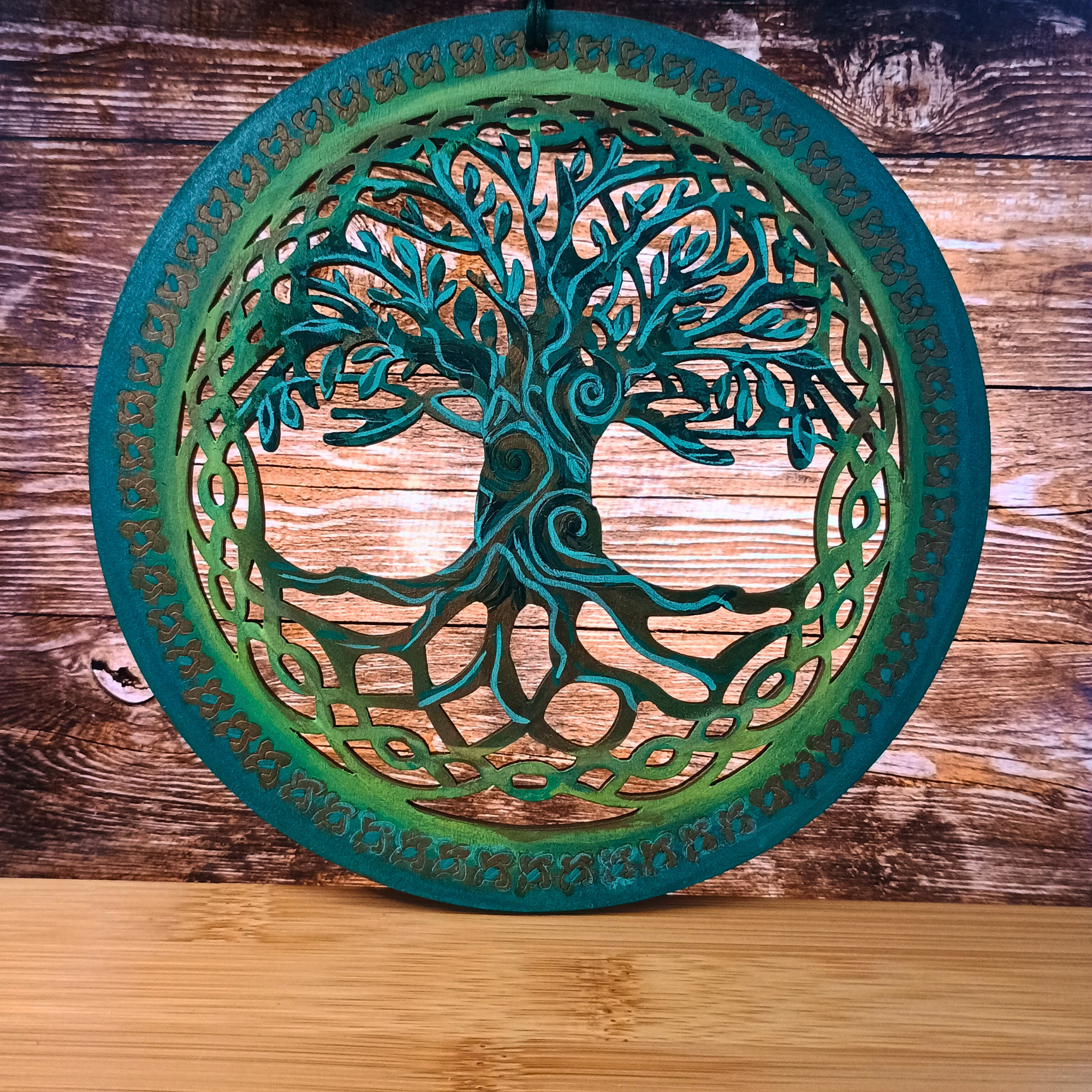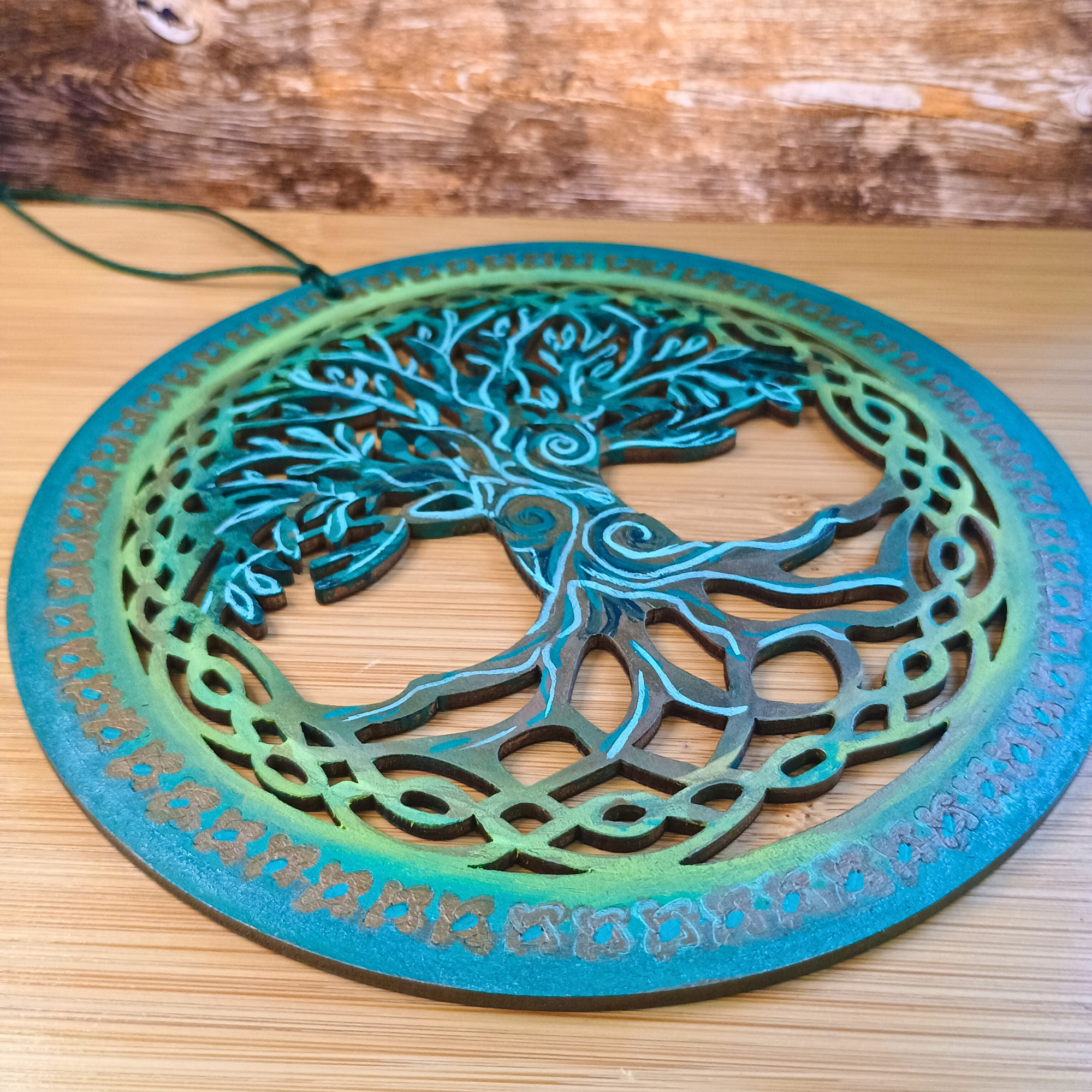 Yggdrasil Arbre de Vie peint sur bois- Inspiration Mythologie Norroise